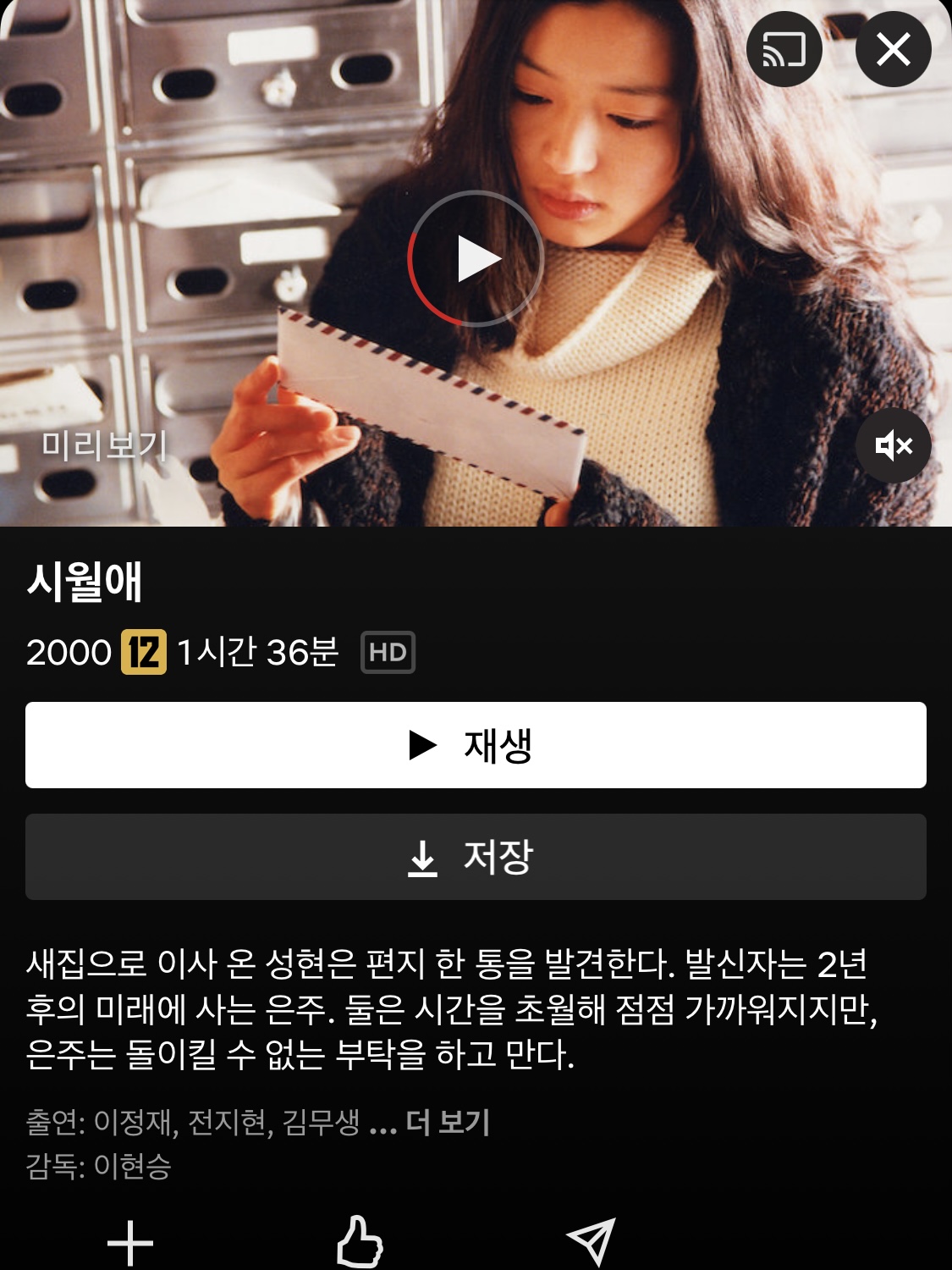 풋풋한 시절의 전지현과 이정재를 볼 수 있는 영화이기도 하지만. 영화 소재가 참신해서 재밌게 보기도 했었죠. 편지라는 매개체로 설렘과 사랑을 느낄 수 있는데 러닝타임이 길지 않아서인지 시간만 나면 계속 보곤 하는 것 같아요. 따뜻한 감성을 느낄 수 있으니 겨울에 꼭 한 번 보시길 추천해요 ^^